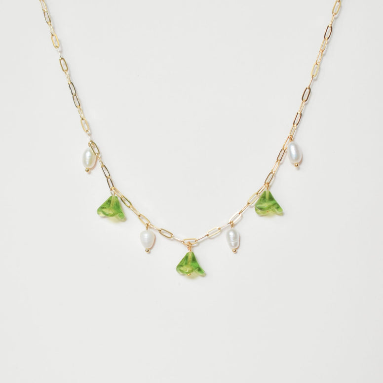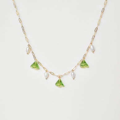 Green Flower Pearl Necklace